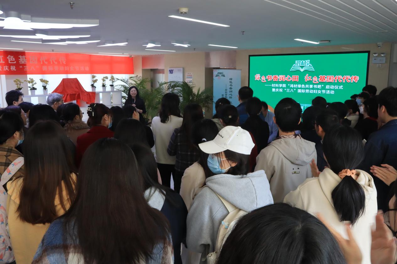 3月8日,“绿色书香润心田,红色基因代代传”—betway西汉姆联材料学院“鸿材绿色共享书吧”启动暨庆祝“三八”国际妇女节活动在5号教学楼隆重举行。betway西汉姆联图书馆馆长杨静,材料学院党委书记金海波,院长陈鹏万,党委副书记、副院长张龙泽、材料学院师生共200余人参与了此次活动,活动由材料学院副院长刘艳主持。