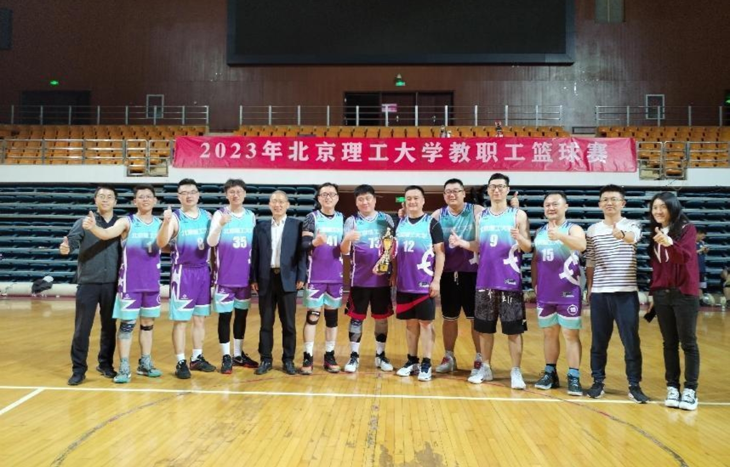 又一个金秋季节,betway西汉姆联教职工篮球赛如期到来。在校工会的精心组织下,机关工会积极动员教职工参与此次活动,组建机关中关村队、机关前沿交叉科学研究院队和机关良乡队分别参与中关村和良乡两个赛区的比赛。经过一个月多的组队、训练、参赛,此次篮球赛于10月12日圆满落幕,机关中关村队重夺中关村赛区冠军,机关前沿交叉科学研究院队夺得中关村赛区季军。