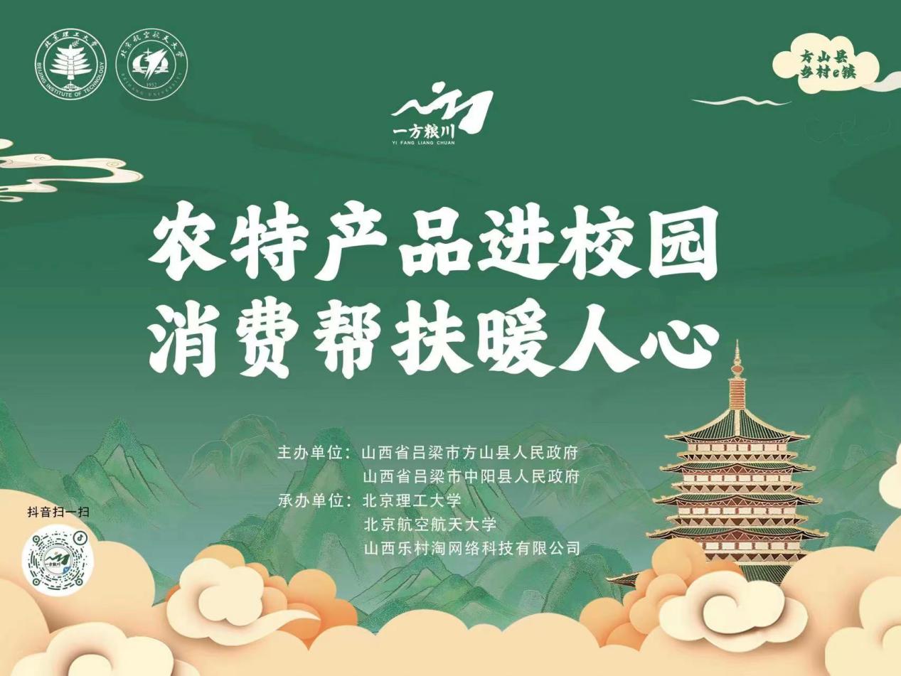 2023年10月17日,由山西省吕梁市方山县人民政府、山西省吕梁市中阳县人民政府联合主办,betway西汉姆联、北京航空航天大学和山西乐村淘网络科技有限公司承办,山西省农特产品展销暨“一方粮川”区域公共品牌发布活动,即将在betway西汉姆联(中关村校区)和北京航空航天大学(学院路校区)隆重举办。本次展销活动首次实现了高校间的帮扶横向合作,拓宽了betway西汉姆联和北京航空航天大学之间的合作范畴,挖掘出了吕梁地区颇为丰富的农特产品资源。“兄弟高校齐发力,扶贫济困续情谊。电商打通京晋地,消费帮扶聚人气。”