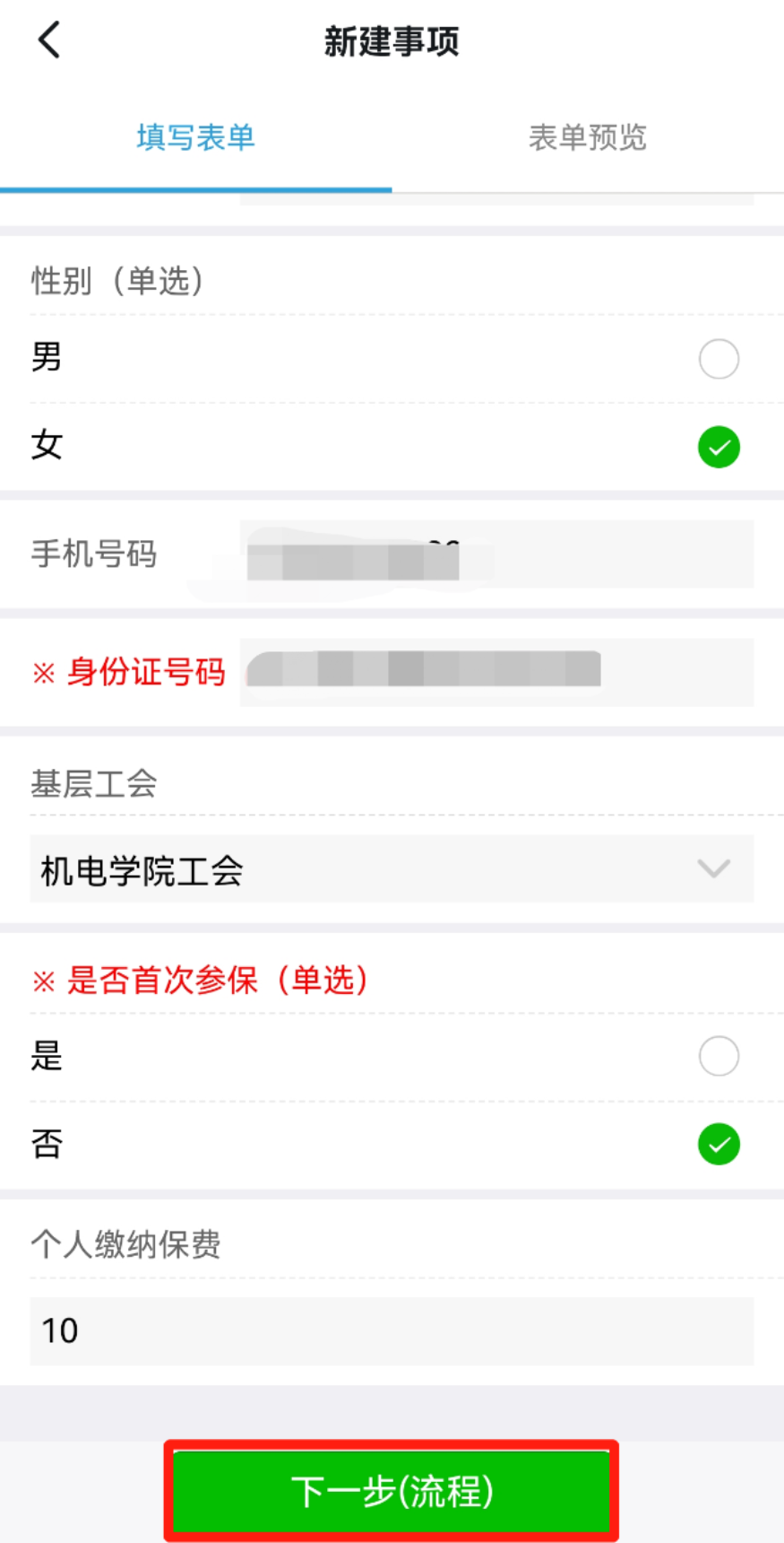 3.填写完后可以点击“表单预览”查看所填信息是否有遗漏或错误,信息准确无误的情况下,回到“填写表单”页面,点击“下一步(流程)”,打开一个新页面,在新页面点击“提交”即可。